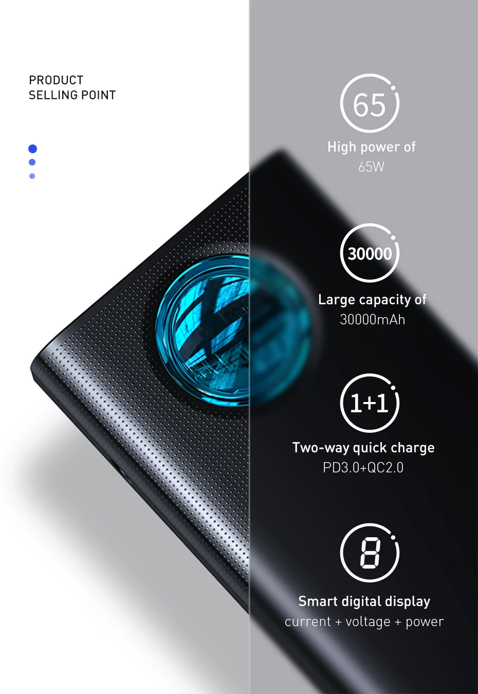 Amblight Digital Display Quick Charge Power Bank 30000mah 65W