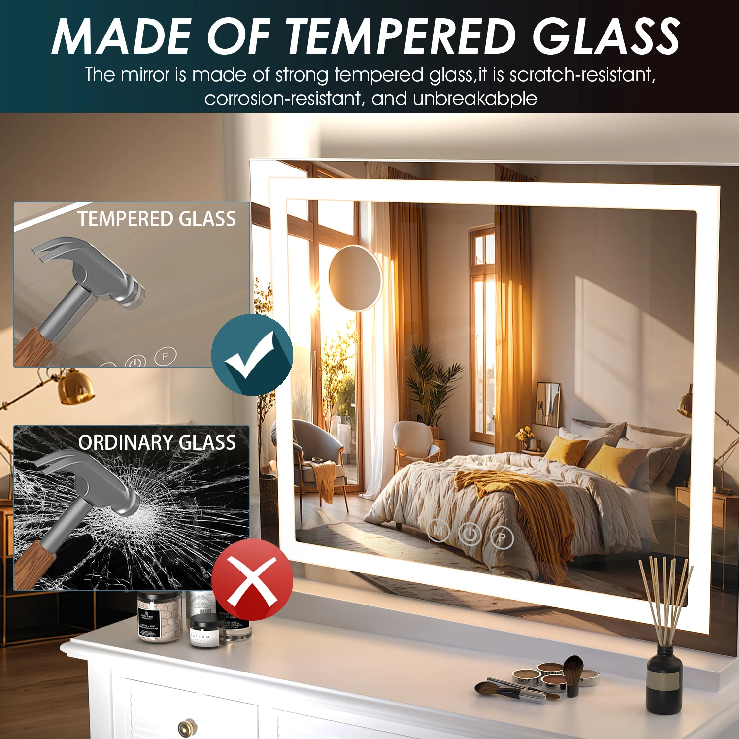 Parfait pour la coiffeuse de la chambre ou pour la salle de bain :