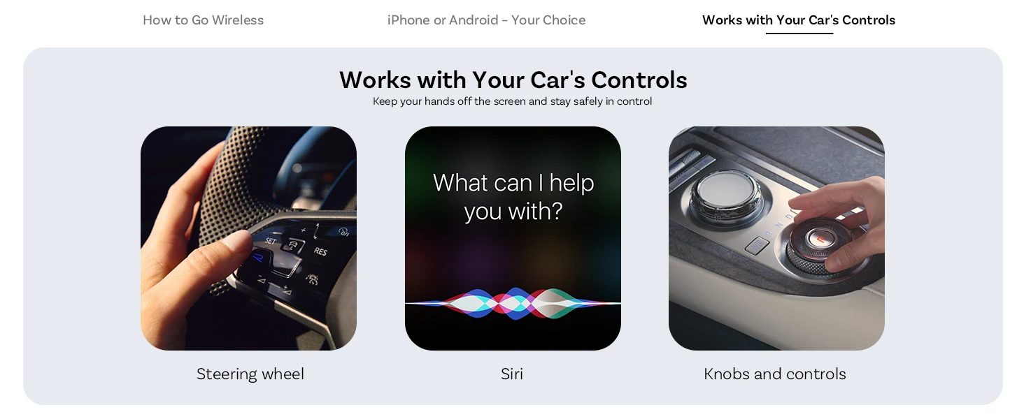 Maintien des commandes d’origine : Contrôlez vos applications via l’écran tactile, les boutons du volant ou la molette centrale.