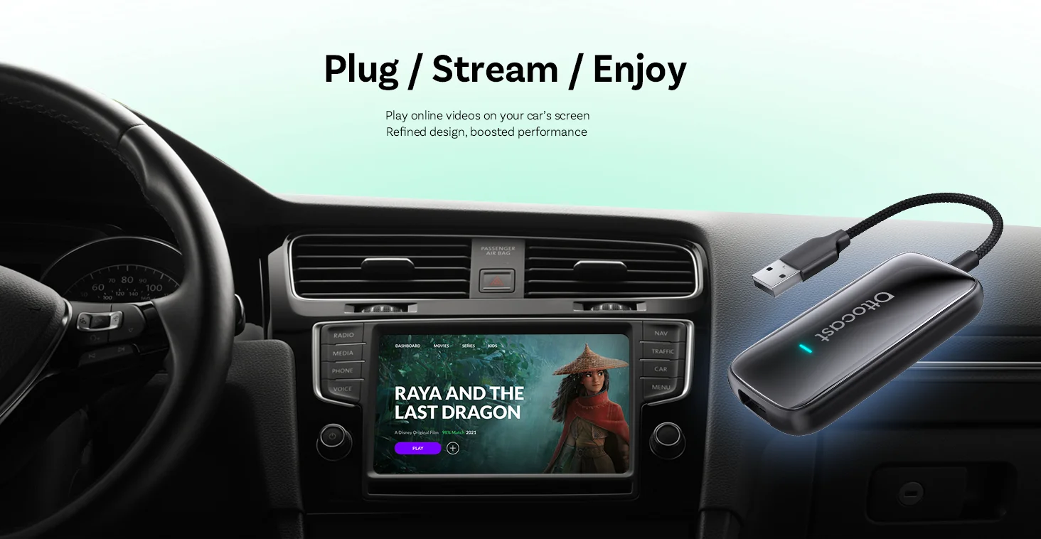 Regardez vos séries et vidéos préférées directement sur l’écran d’origine de votre voiture.