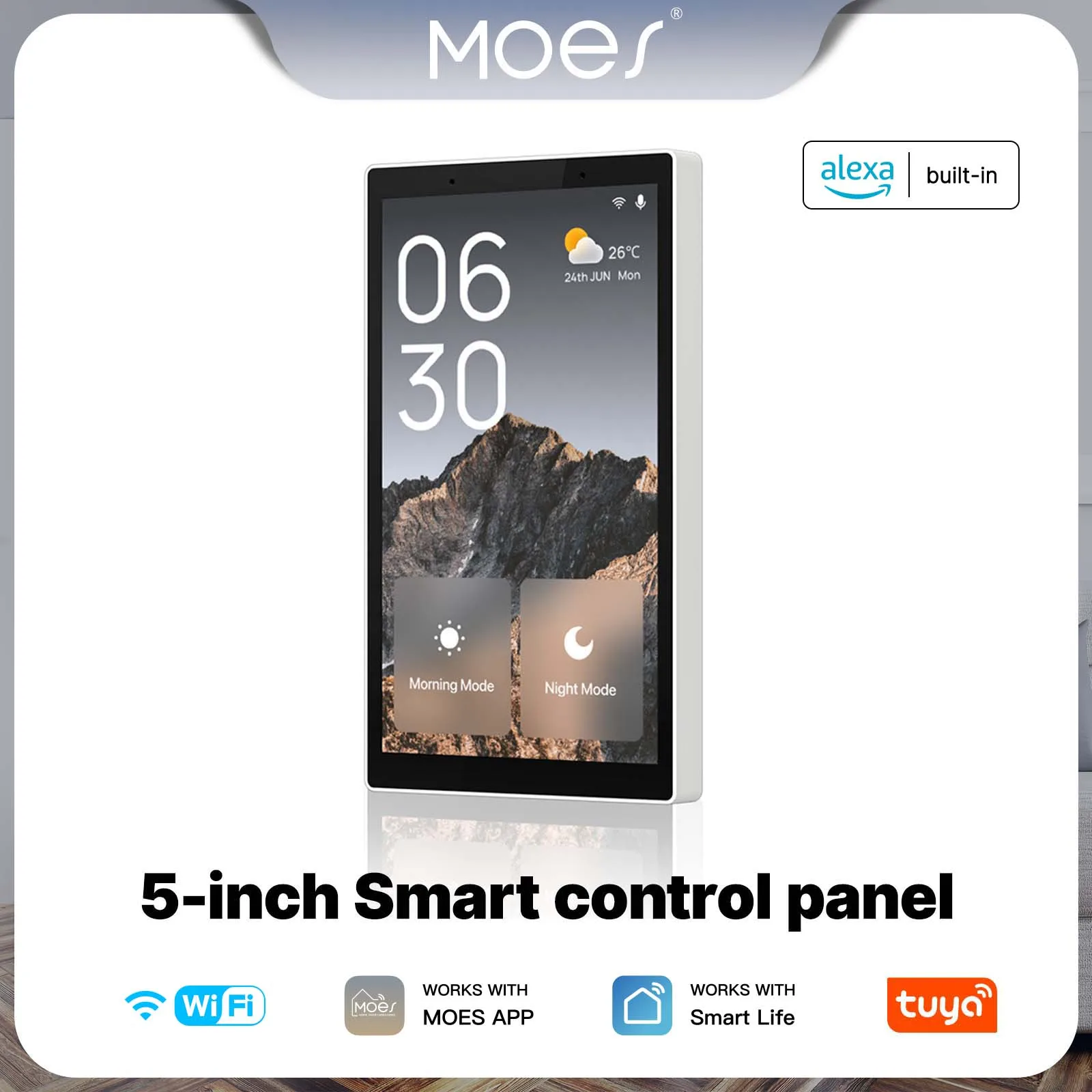 MOES Panneau de Commande Central 5″ | Écran Tactile HD | Hub Zigbee 3.0 & Bluetooth | Alexa Intégrée | Format Mural US