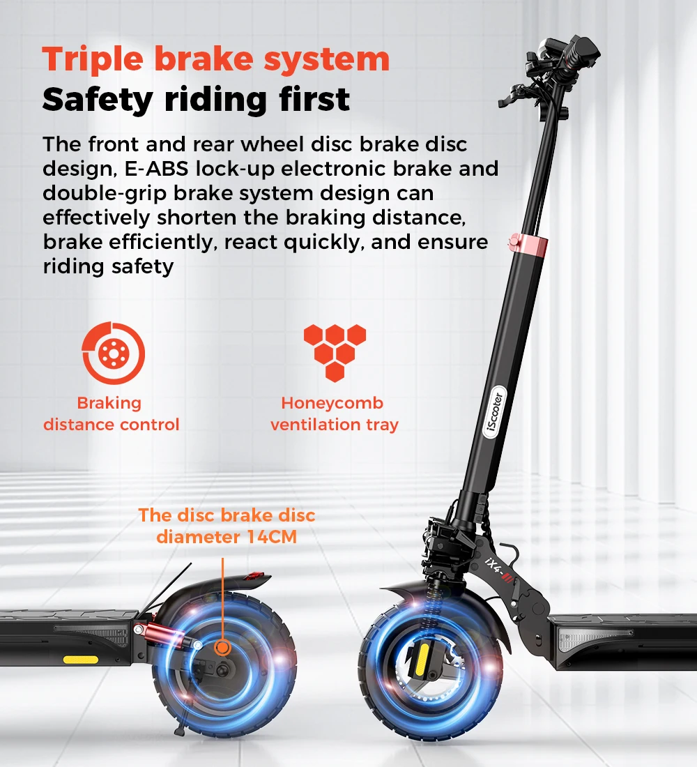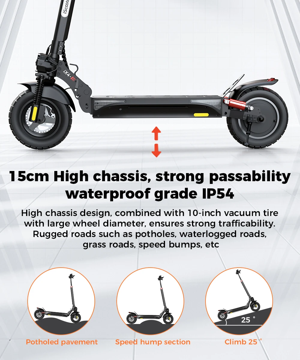 iX4 Scooter 800W Electric Scooter, 10″ Off-Road Tires, 45km Range, APP Control, EU Certified